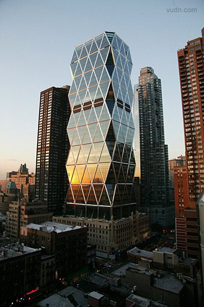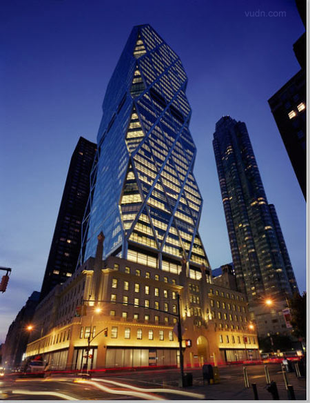 Foster & Partners设计的纽约曼哈顿Hearst大楼设计。采用独特的三角形框架, 46层,共 85.6万平方英尺的结构,绿色节能设计。