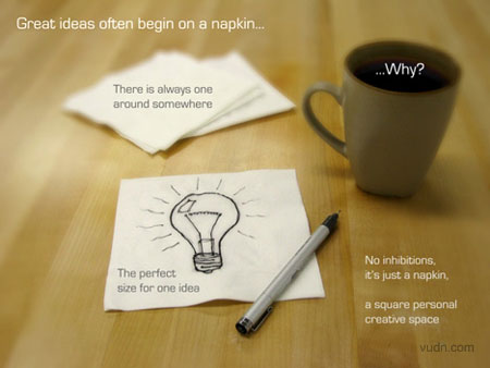 你肯定有这样的体验,在休息时冒出很多想法只能记录到餐巾纸上: