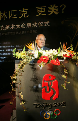 国际奥委会文化与奥林匹克教育委员会主席何振梁与各位著名美术家们一起推出了“艺术,让奥林匹克更美”的活动口号