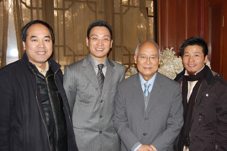 会后,创作小组主要成员任宝华先生、刘义先生与何振梁先生和夏斯均先生合影留念,祝贺大会圆满成功!