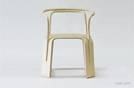 Takae原木一体成型椅,有些北欧风格,采用原木材质,特点是采用一体弯曲成型技术