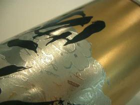 事实上,我们日常生活中常见的饮料铝罐或是喜饼盒子上面丰富多彩的图案就是藉由平版印刷、网版印刷或是整片的油墨滚涂所创造出来的。平版印刷可以透过四色套印或是特别色印刷产生颜色丰富的高解析度图案或是影像,是饮料罐与饼乾铁盒最常用的印刷方式。网版印刷则有着较多变化的视觉与触觉、甚至是嗅觉效果:藉由油墨厚度的控制可以产生凹凸纹理的触感,也可以在油墨中加入珍珠颜料创造特别的视觉效果,另外还可以使用温变油墨或是含有气味胶囊的油墨产生防?或是香味等特殊效果。油墨的滚涂搭配适当条件的烘烤可以使得油墨产生整片的结晶裂纹或是水珠雾面等效果,常用於喜饼盒子营造特殊的质感。