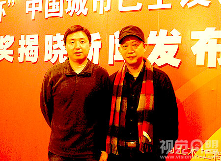 四川美术学院设计艺术学院工业设计系赵卫东教授(右)和视觉同盟主编廖翔(左)合影留念