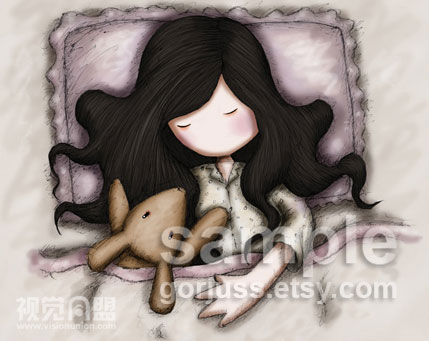 ) 推荐的英国Suzanne Woolcott长发心情女生系列插画