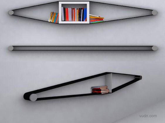 这是一个类似皮带轮的弹性书架,可以放置不同尺寸的物品,来自arianna vivenzio,目前还是概念设计