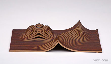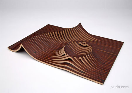 Angela Violino 和 Tim Boyce设计的水果盘,(你有没有这种体验,水果直接放到碗里时会很快坏掉),这个水果盘采用激光切割的一根根木条组成,即时不放水果时也是一件优美的艺术作品