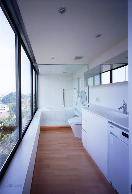 别墅坐在山顶俯瞰仙台市,在悬崖上崛起为该地区提供壮丽的景观。周边有关房屋规划构思的密度构成的细长型建筑和大型花园相连。要考虑到北部吹频繁的强风,空调地板辐射采暖是适用于整个楼面面积,在1楼大房间,空调取暖是还提供了对每个房间的墙壁,创造舒适的空间与取暖。
