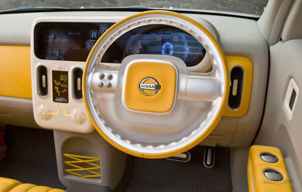 在造型独特的Cube架构下,Nissan将最新的鋰电池动力技术植入其中,推出了Denki Cube Concept电动概念车。