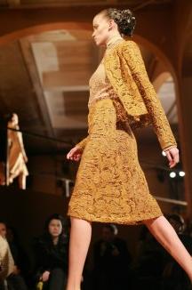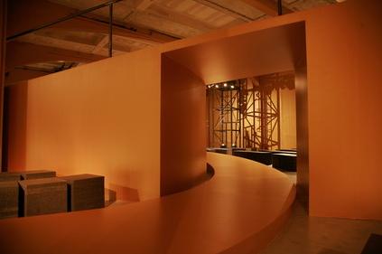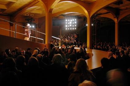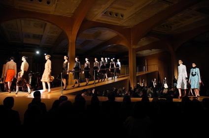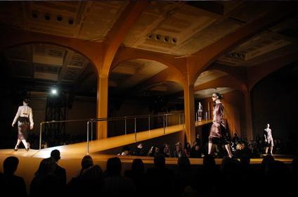 PRADA的08秋冬女装的展示会场跟男装的相差无几,只是模特儿们所走的路由原来长方形拼起来的男士大道,变成了一条平整的小路。展会采用枯叶黄色作为主色,凸显出了成熟女性那恬静中散发出了的气质,举止上表现出来的优雅。