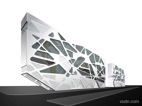 刚看到图片,也许你不知道这个狭长的建筑物有什么用途。不过,当我告诉你,这个建筑物不是给你用,也不是给我用,更不会给他用的时候。你一定觉得更加奇怪吧。一座不是给人用的建筑物?其实,这是一座为建筑而生的建筑物。它是建筑物之前的一面装饰墙,也是建筑物之前的一面隔音板。这个特殊建筑的几何表面由电脑控制,可以方便地打开任何一个几何形状的窗口,给装饰板不一样的图案以外,也可以改变后面建筑物的采光程度。