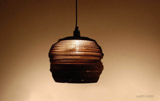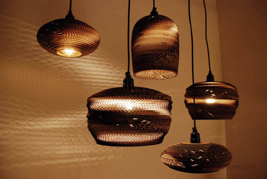 Graypants的设计理念是可持续性重复利用。他们的最新作品Scrap系列吊灯采用旧的产品里的带有皱褶的硬纸板做材料,造成了一种波纹形半透明的光影效果。