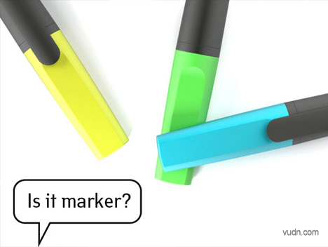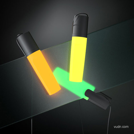 设计师们厌烦了那些单调的办公室灯的设计,而设计了这款能发荧光,外形酷似马克笔的灯具,它一共有蓝,绿,黄三个颜色。