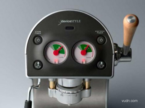 该款咖啡机的设计师却是来自日本的Tadahito Ishibashi,它将该款咖啡机设计成了意大利跑车的操纵表盘的形状,这样看起来就非常的酷,非常的时尚了。
