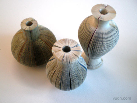 即将毕业的设计师Laura Cahill在今年伦敦New Designers上展出了用废弃书刊制作的花瓶和家具等。