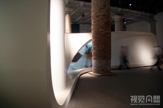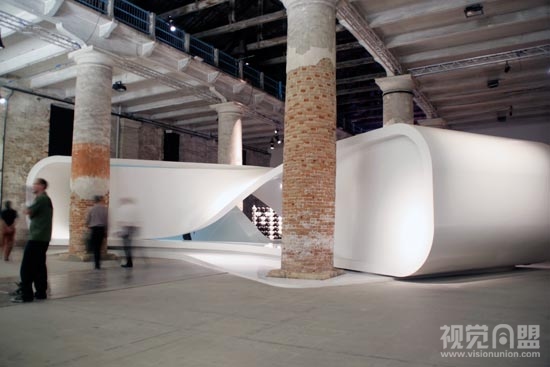 UNStudio在这次威尼斯建筑双年展上,给我们带来了一个线条优美的空间。它的名字是:changing room。大家不要误以为它是更衣室的意思。其实UNStudio的作品是通过不同的扭曲空间来改变参观者的视觉角度。