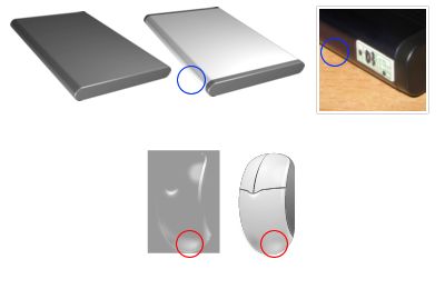4.同样,鼠标的侧面也使用这种方法,基本完成了造型,但是还缺少点什么,整个移动硬盘表面上的东西象是贴上去的图,没有任何层次感