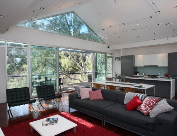 别墅位于南澳大利亚东部边缘的城市阿德莱德。在这样一个狭窄的地点,Drew Edwards设计师提出了几个独特的设计问题,并且利用“Bridge like”工程学提供骨骼钢制框架来解决一定的难题。