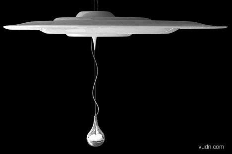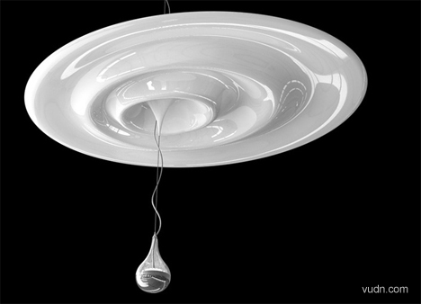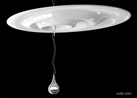 设计师Daniel Becker关于涟漪水滴灯设计,其中上部分的三个圆圈涟漪能够使下面LED灯所发出的光发生放射等,从而柔滑灯光。