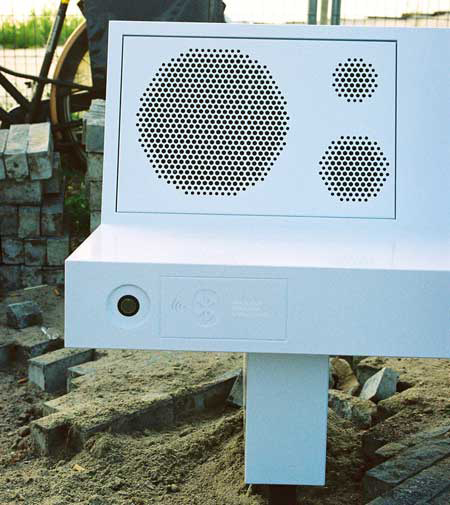 德国NL Architects的设计师Michael Schoner设计了一款可以通过蓝牙播放音乐的长椅,名为Boombench。上个月曾在荷兰阿姆斯特丹的Urban Play上展出。