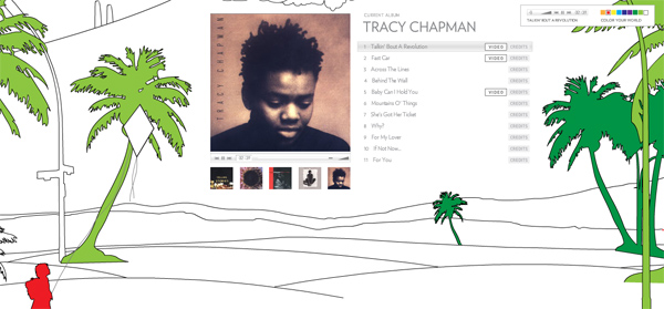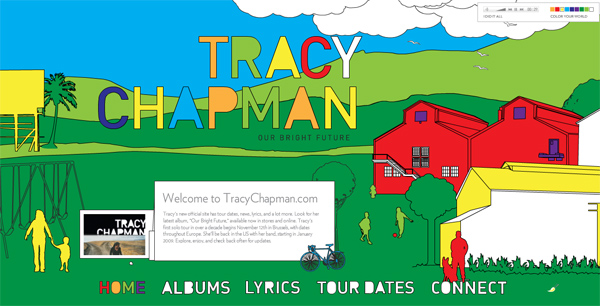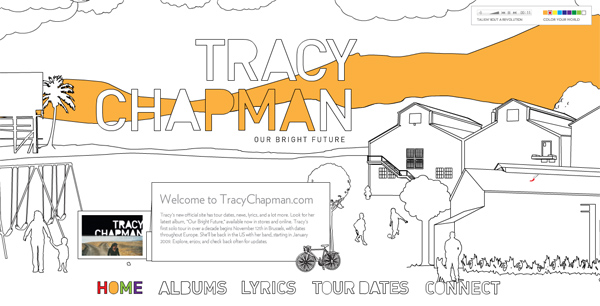 Tracy chapman推出的新专辑唱片介绍网站,并且有好玩的给图片上色动画游戏玩。