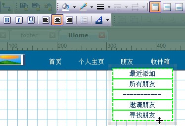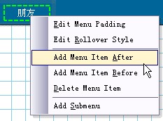 Tips:要先选中上级菜单选项,下级菜单才会显示出来; 下级菜单显示的起始位置是上级菜单的左边线,并且无法超过左边线。通过右击菜单中的“Edit Rollover Style(编辑翻转样式)”项,可以制定鼠标移动到菜单上时的菜单样式变化。
