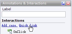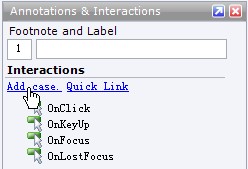下面开始添加Interactions(交互事件)。为表单添加交互事件的方法,先选中工作区中的表单组件,然后在Interactions面板选择“Add case..”添加事件。