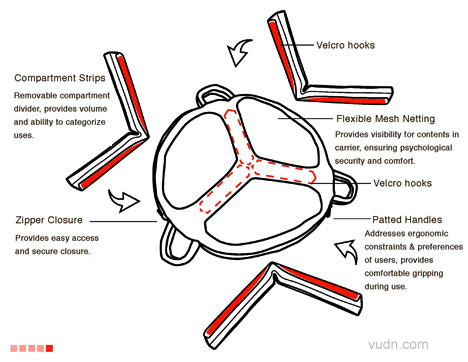 Emily Lin设计的Mary-Bean互动式手提包主要的关注点在于青少年儿童的自闭倾向。这个手提袋允许两到三个人同时提着,包内的物品都清晰可见,促进了自闭症青少年儿童之间的互动。