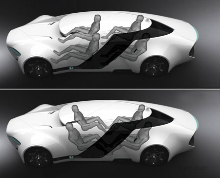 韩国弘益大学的Myung Jin Jung最新设计的本田Zeppelin概念跑车采用了非对称设计。最大的亮点在于Zeppelin的前排座椅可以旋转180°,这样能像在家里一样能使车主和乘客面对面地交流。