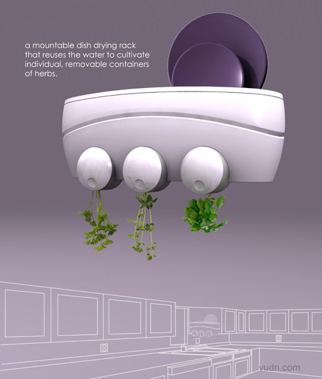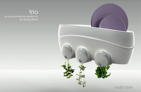 Jordan Bailey设计的Trio环保烘碗机,利用烘干碗碟剩下的水浇灌植物,不仅解决了烘碗机余水的排放问题,也解决了植物的浇灌问题。