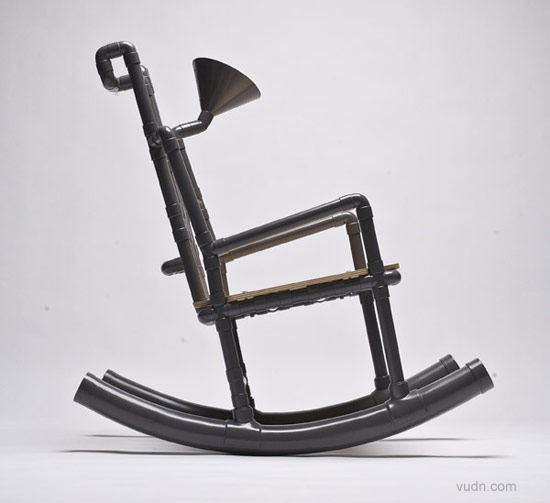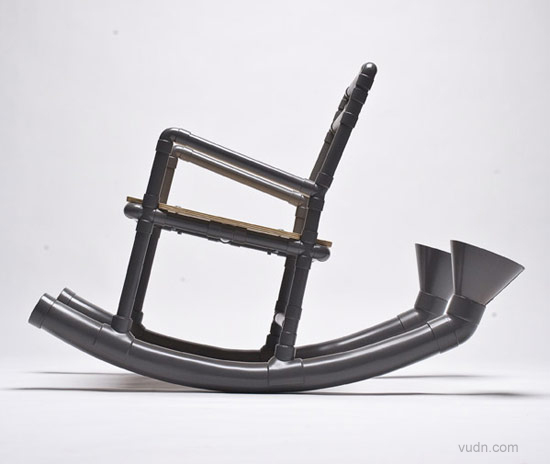 Joon & Jung设计的Rocking On The Beach椅子,在椅子上加入了管子等特别元素,在使用时可以发出一些类似海边的声音。