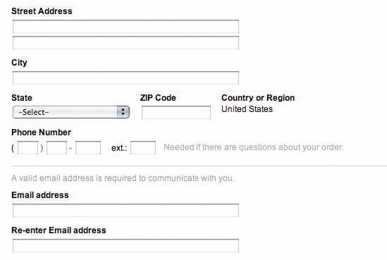 图5.2,eBay Express网站表单,邮政编码输入框符合美国邮政编码实际长度:5位数。电话号码输入框也符合美国标准电话号码长度。其他文本输入框长度一致,足够填写答案。