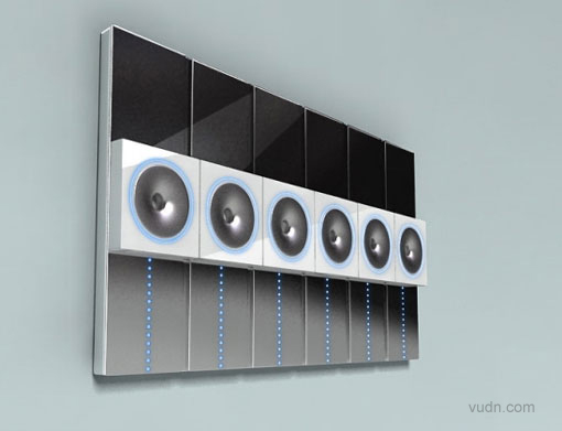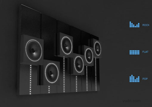 Young Sang Eun设计的音响灵感来源于播放软件、播放器显示屏上所经常看到的均衡器,非常有创意。你可以通过上下滑动音箱底座上面的几个方块音箱来调节音量,它们的位置不一样就会有不同的音响效果。