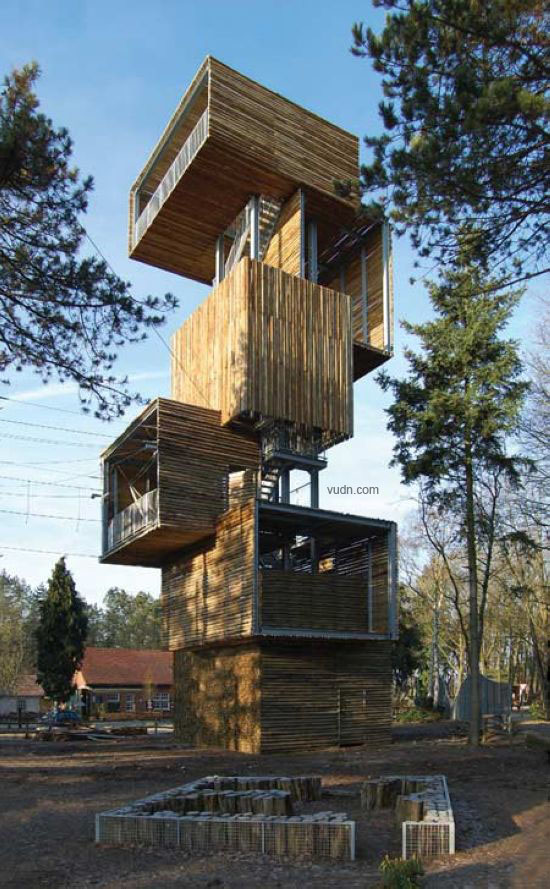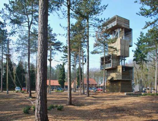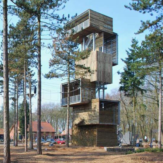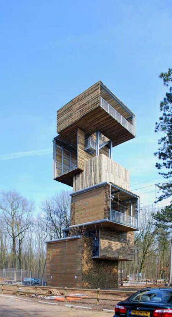 荷兰建筑师Ateliereen Architecten已经完成了25米高的塔上观赏户外运动公园,位于荷兰。 该观景塔25米高,六个“箱子”层层堆叠各异,攀爬设施齐全。