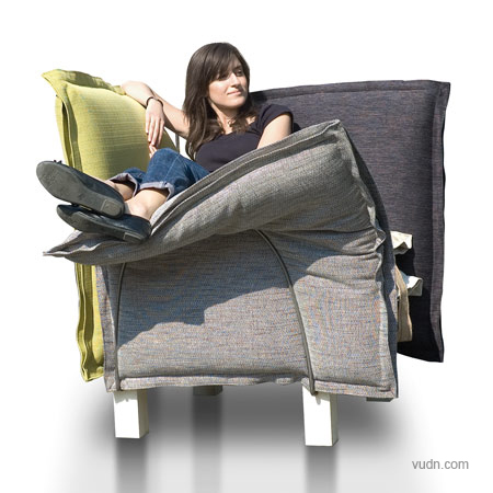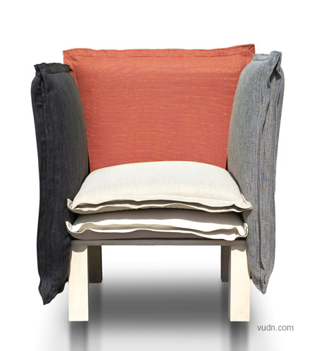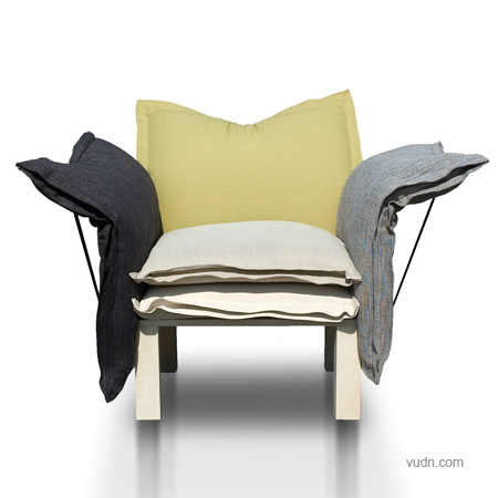 西班牙设计师Martí Guixé的沙发设计由5个靠枕和木制底座与金属支架构成,可以自由组装与拆分,以确保更好的舒适性。靠枕还加入纽扣设计便于用户自行调整靠枕状态。