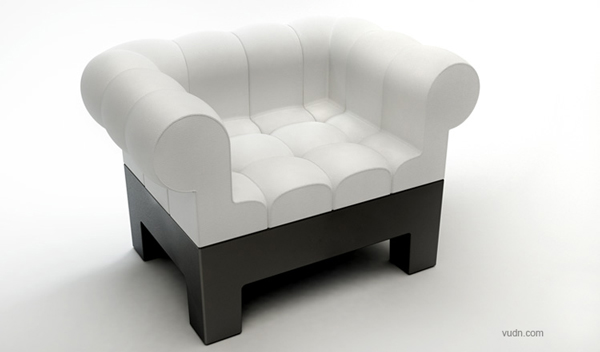 设计师Jimmy Yang的名为Modi Sofa的沙发设计,将沙发坐垫分割成一个个如同馒头似地单元,将基本单元按照各自的形状和功能塞入沙发底座,用户就可以做自己想要的馒头沙发。