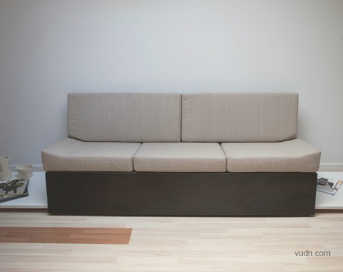 设计师Dyadny设计的名为城市的沙发设计,外观普通大方但另有千秋,许多沙发设计很时尚美观,但是却忽略了沙发下面的空间利用,这种浪费对于面积很小的客厅,一定是个大问题。其实我们可以有方法利用这部分空间,就如同城市沙发所展示的,在沙发下面有一个轨道,上面可以放一张木板,我们可以在木板上面放一些物品,当需要使用的时候,只需要抽出木板就可以使用了。