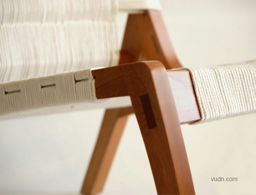 天气热的时候,很多人都不想坐在柔软的沙发上了。Due Estudio设计工作室的El Savador设计的lola椅子很适合使用。此款椅子的部分灵感来自于吊篮,在木制椅子的架构上,背部和底部加上厚厚的白色棉花线,坐上去舒服而且很透气。