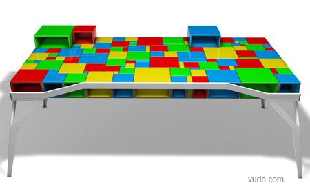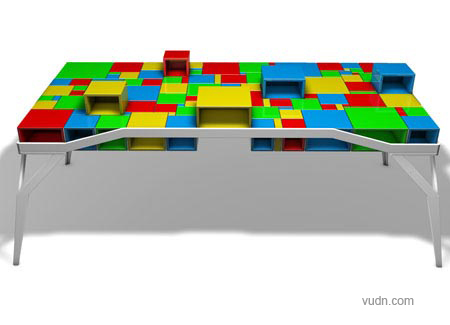 设计师Matthias Pugin设计的立方体桌子不同于传统表面形式的桌子,它表面上有不同大小及不同颜色的存储空间,是为了根据不同的需要开启不同的空间,而打开它仅仅需要一个力量往下压,很有趣味的桌子。