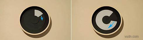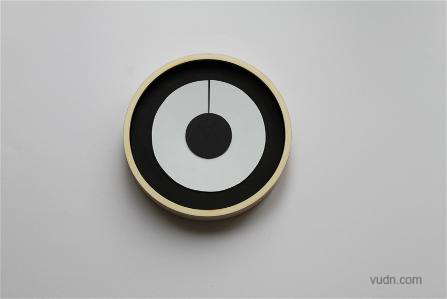 标靶挂钟 (Target Clock)是一款充满着动感的钟表,它让黑、白两色在时间的赛道上永不停歇地追逐:表面由两个交替显现的同心、同径圆环组成,分别是黑色和白色,这两种颜色会互为“跑道”,让另外一种颜色在上面作1个小时的计时赛跑,而两种颜色的两个交界线即表示当前的小时数和分钟数。设计师:Simon Lumb。