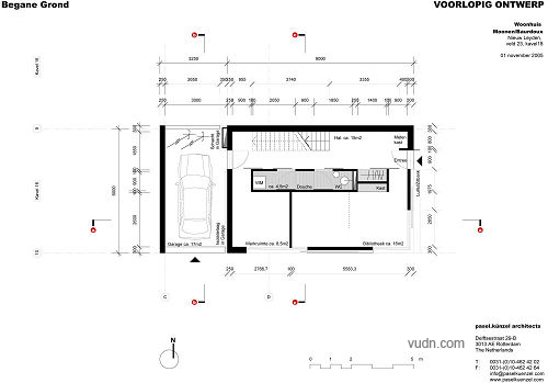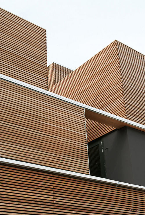 由于基地条件限制,不允许住宅有传统的前后院,于是采用了屋顶花园。开放的木地板屋顶花园给建筑的室内空间带来了优良的景观。屋顶的花园给主人提供了最大的私密性。建筑的木材外表皮在竖向扩展了屋顶花园。