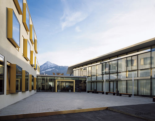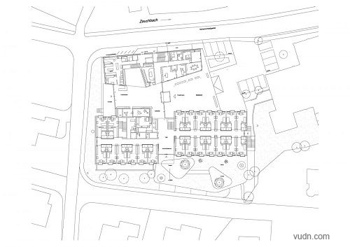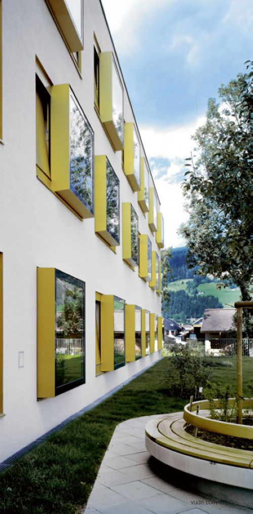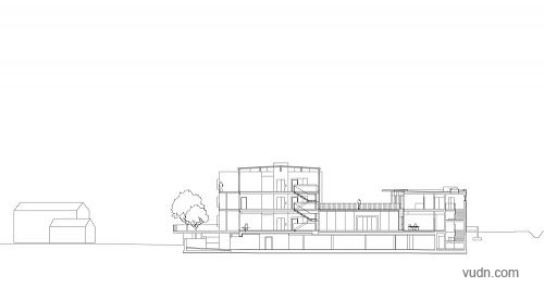 老年人公寓和社会中心都沿着东西向轴线排列,把基地分为两个户外活动场地。建筑之间的公共的户外活动场地让老年人和城市的居民共享。自己的户外活动场地让老年人在护理人员的监护下享有各种户外活动。老人在果轻松的散步,或者管理花坛等。