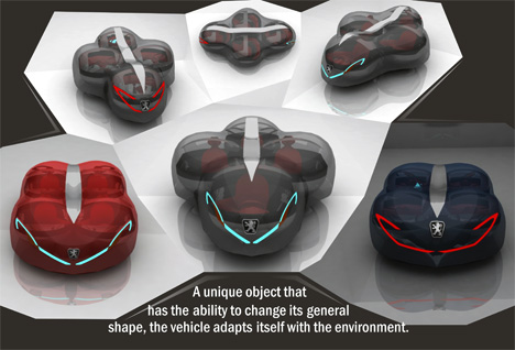 设计师Ahmad Filiz设计的这款标致球体概念车是由四个不同的单元共同组成在一个球的形状。每个球可容纳一名乘客,由单独电动机驱动。这四个球形连接到中央的电池,中央是一个非常灵活的、能够聚能的装置。这款车的设计在自我组装的基础上,可以不同的安排排列。同时,它可以为单一直线的四个球,越过狭窄的车道。这辆车只占用130厘米× 130厘米的停车空间。