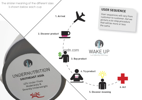 这款杯子由Hans A Huseklepp, Karl Sjöstrøm和Henning R. Nielsen等人设计,名字叫“觉醒杯”。意在提醒人们世界各处的不平等,以激励人们进行全球性的行动。