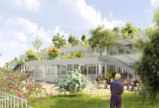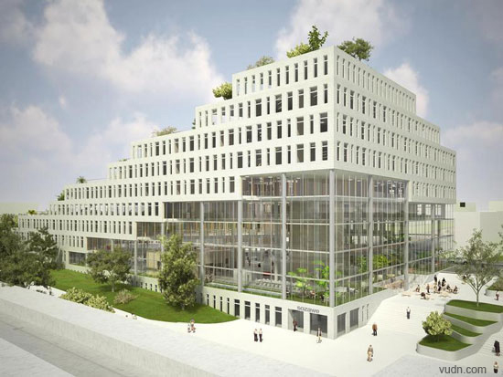 NL建筑师事务所设计的SOZAWE大楼位于荷兰格罗宁根市。该建筑由办公空间、室内共享大厅和215个停车位共同构成。NL事务所试图构筑一个开放的建筑,吸引人并可持续发展。该设计的核心部分是开敞的“大市场”或者叫“广场”的室内空间,这里创造了该部门与其客户间的交互共享大厅。 办公楼顶部台阶状的体量形式创造了各层间良好的穿插与连接关系。办公室总共9层,每一层都有室外花园平台,并拥有良好的城市景观。
