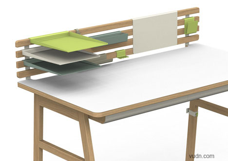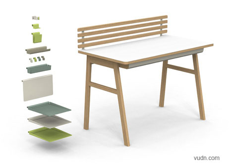 普通的办公桌都是上面一个平台,下面有几个小抽屉。平时我们为了让办公桌台面上整齐,会放置一个小的物品箱和文件夹之类的办公用品。如果您有条件自己定制办公桌,那么不妨看看我们这里为您提供的这款低调的多功能办公桌,它提供了一些可以自己安装的小架子,使我们可以随心所欲的布置办公桌,非常实用,而且灵活多变。