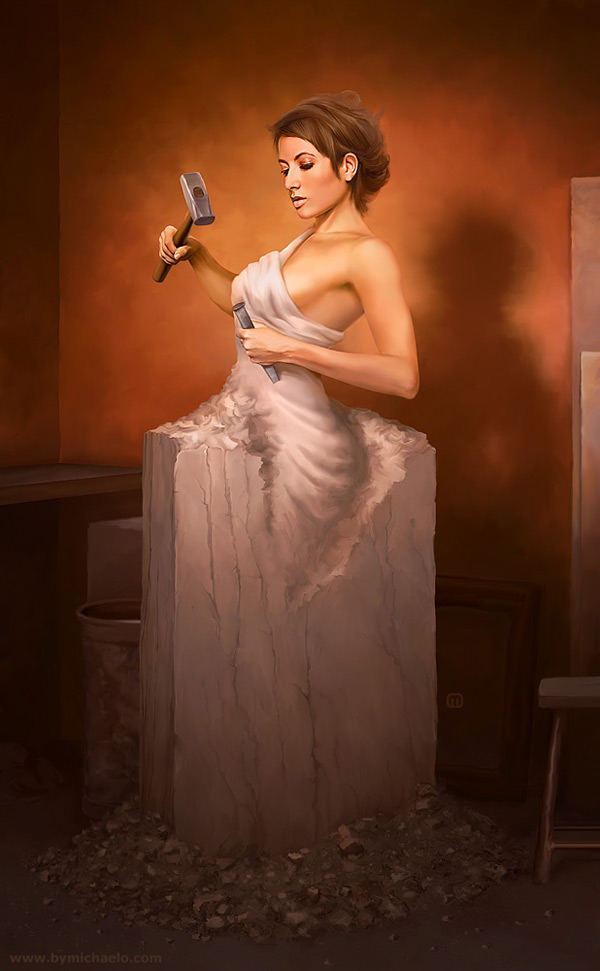 现年28岁的美国数字艺术家Michael Oswald笔下多为女性形象,曾有人问他为何不创造男性角色,他回答道:我的大部分作品传达的是深刻的感性的概念,而女性角色是对其最好的诠释方式,“性感”也是我灵感来源很重要的一部分。