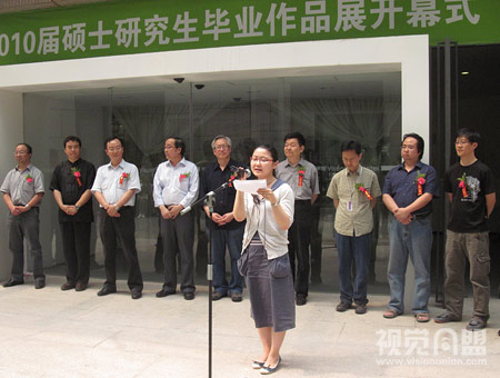 清华美院2010届硕士研究生毕业作品展6月8日下午在清华大学美术学院美术馆开幕。展览展出了来自染服、陶瓷、工业、环艺、视传、信息、绘画、雕塑、工艺美术和基础教学研究室在内的10个系(室)100名硕士研究生的588余件(套)作品。清华美院常务副院长郑曙旸、副院长何洁、党委副书记、副院长李功强,及各研究生导师出席了开幕式。