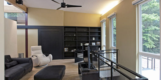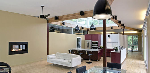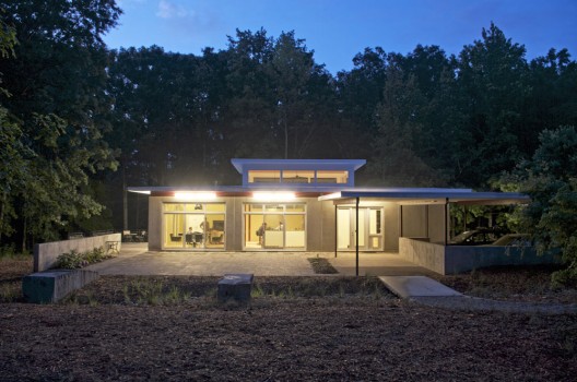 这所住宅栖息在树林和植被充裕的草地中间,它水平的结构将住户与地形重新连接起来。丰富的特色和创新的建筑系统确保住宅能与自然成和谐之式。一个中央通风窗将房屋最里面的部分都与自然很好地联系了起来,使这一住宅在整体景观中成为标志性建筑。