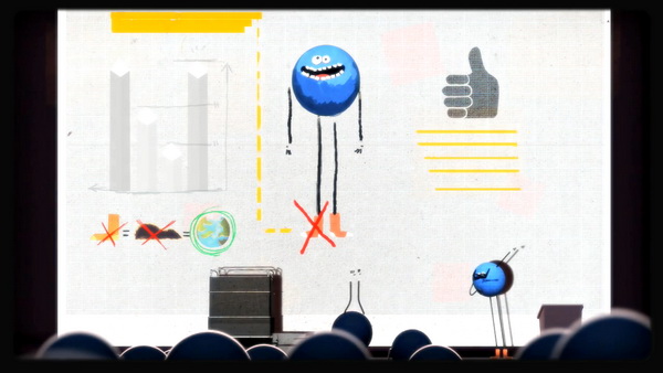 Yann和Celine通过这部短片想告诉我们一个简单的道理:即使是每日可见的小物品,如果我们不足够重视,也能造成灾难性的破坏。故事讲述了蓝色星球上的居民召开会议以拯救他们的星球,但他们却没有着眼于实际问题,反而带来厄运。