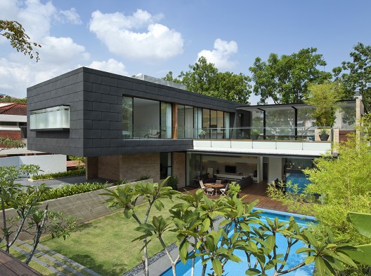 这个住宅的住户有三个小孩,一对双胞胎和另一个更小的孩子,都不超过10岁。设计的主要目的是扩大室外空间,但同时不影响起居空间。这样一来孩子们既可以在室内玩耍也可以享受开阔的室外空间。